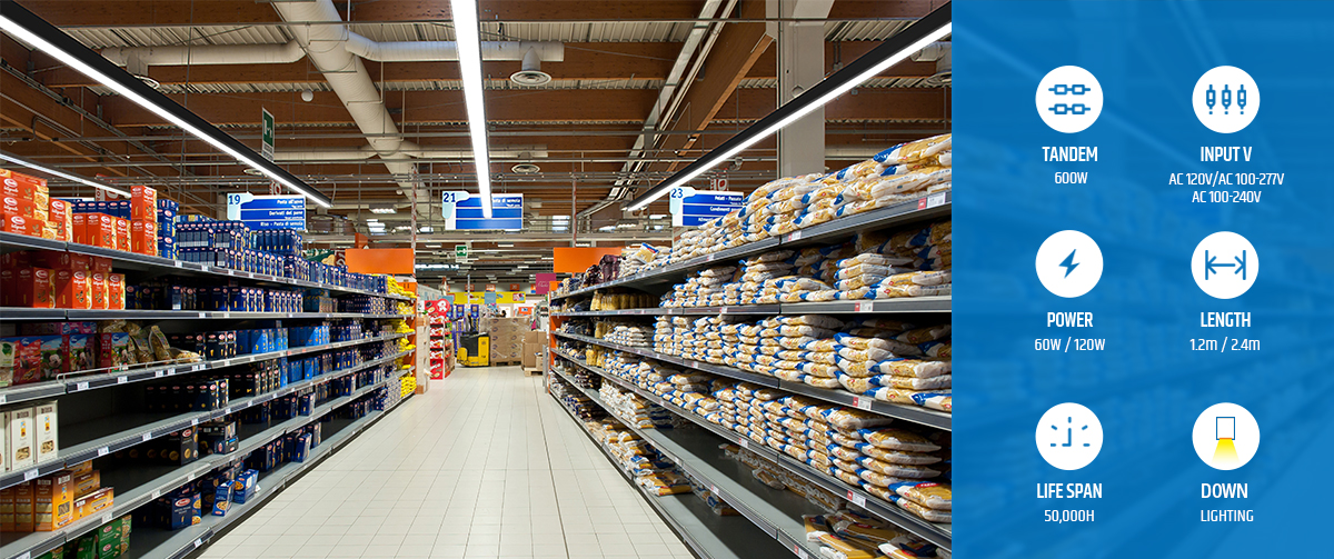 LED Linear Light ist ein spezielles lineares Beleuchtungsprodukt, das sowohl direktes als auch indirektes Licht in bestimmten Bereichen bietet und eine perfekte Lösung für Büros, U-Bahn-Stationen, Supermärkte und Flughäfen bietet weicheres und gleichmäßigeres Licht.